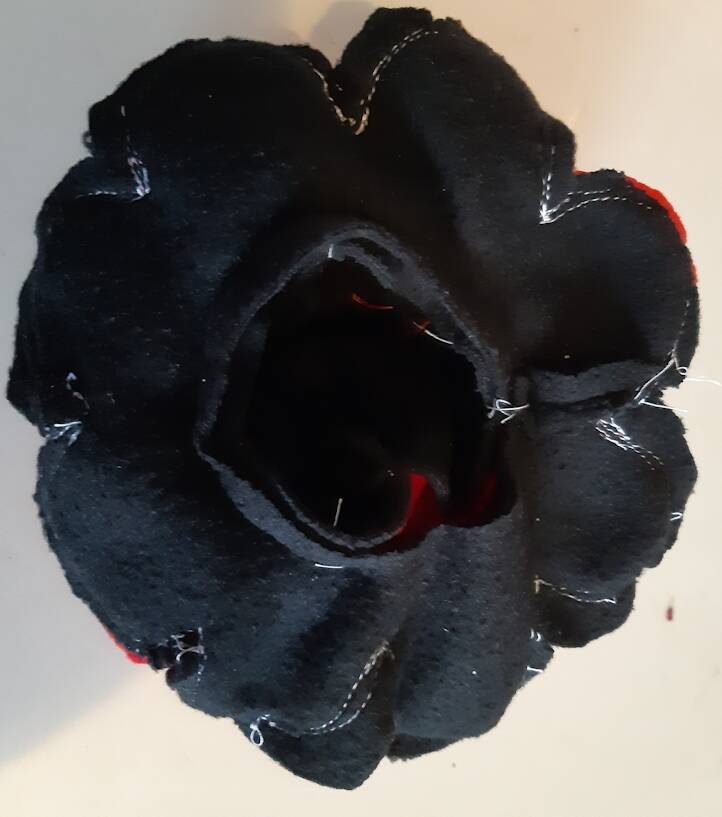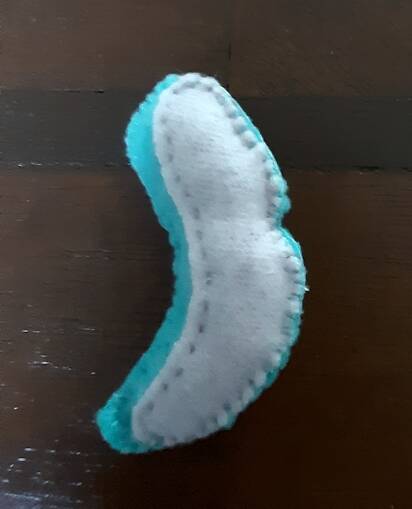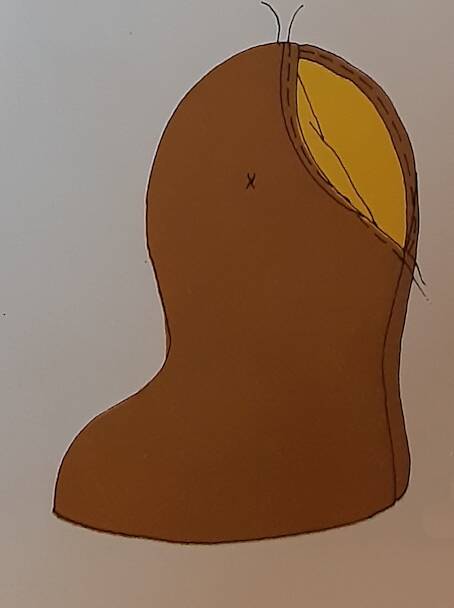 Het 'buiten oor' en binnen oor' op elkaar leggen en aan elkaar naaien Voordat je het oor dicht maakt het oor een beetje opvullen.