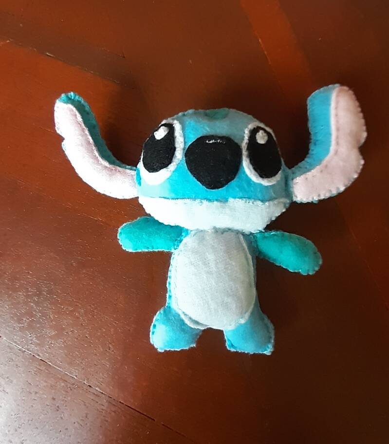 klein knuffeltje 'stitch' een speeltje voor de kat. in dit geval had ik er al een gemaakt, maar hij is versleten dus er moet een nieuwe komen want de kat speelt er de hele dag mee.
