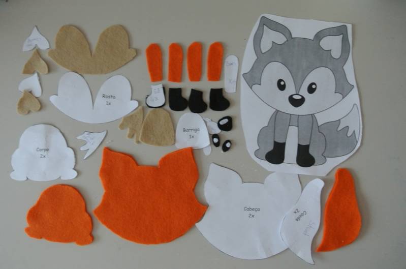Knip het patroon uit , alles op stof (vilt) leggen en uitknippen. Maak eerst het gezicht, ogen en mondje op wit gezicht borduren en neusje erop vast naaien. gezichtsdeel op kop naaien. 2x hoofd op elkaar leggen en aan elkaar naaien. opvullen. Oortjes: witte binnenoor op buitenoortjes zetten . De achterkant aan de oortjes maken en een "beetje" opvullen. Dan aan het hoofdje vastmaken. Daarna het borstdeel op de buik vastnaaien ook op de staart het witte puntje op de punt van de staart vastnaaien.de achterkant aan de voorkant naaien van alle bij de delen. Hoofdje op lijfje zetten en klaar. En ze hoeven niet persé oranje te zijn.