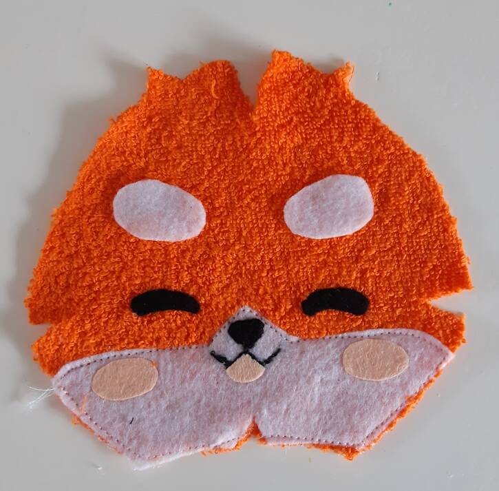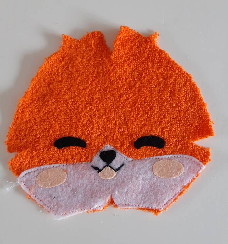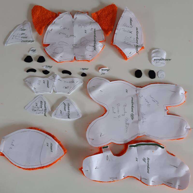 Vosje patroon papier op stof leggen en uitknippen .Het witte gedeelte bewerken .