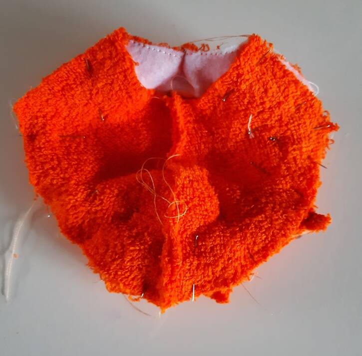 Als het hoofdje is vastgenaaid omkeren nu het hoofdje klaar is beginnen we aan het lijfje